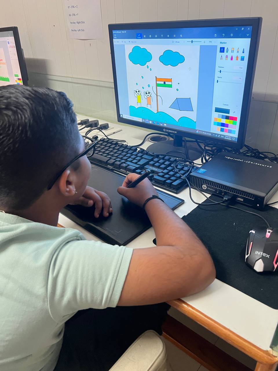 At NBG, we provide hands-on workshops utilizing software like Paint, Paint 3D, Krita, and Gimp, with guidance on configuring drawing pads and pens, fostering Artistic expression and technical proficiency among participants.